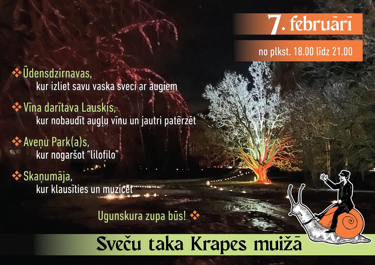 apmeklēt Krapes muižas ēkas, iepazīties ar to saimniekiem, kā arī izbaudīt viņu piedāvātās aktivitātes.- Ūdensdzirnavās, kur varēs izliet savu vaska sveci ar augiem. https://www.krapesmuiza.lv/udensdzirnavas/