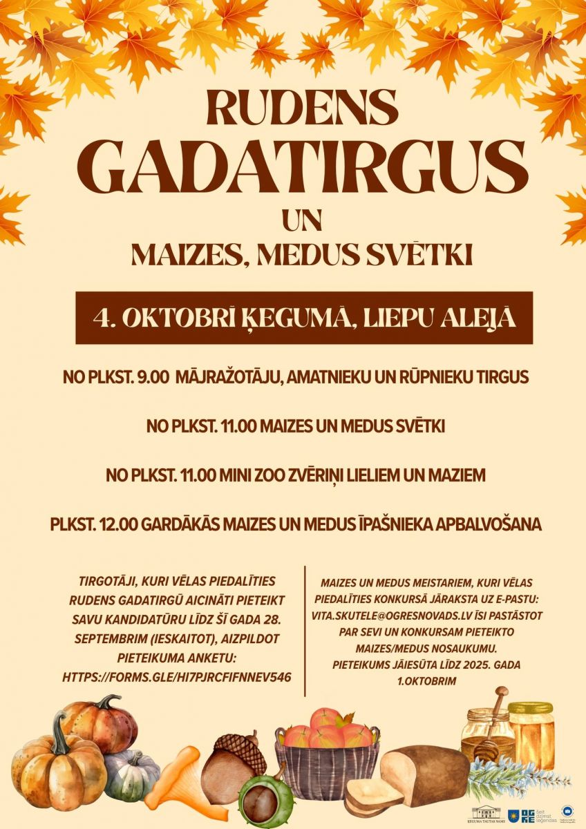 4. oktobrī RUDENS GADATIRGUS UN MAIZES, MEDUS SVĒTKI Ķegumā!