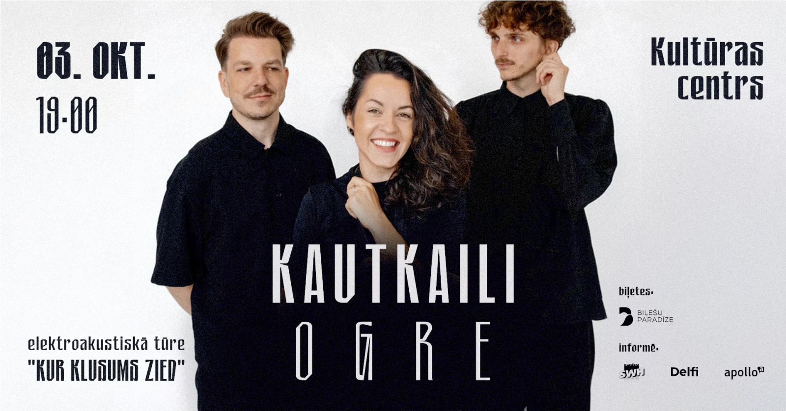 3. oktobrī plkst. 19.00 Ogres novada Kultūras centra Lielajā zālē KAUTKAILI elektroakustiskā tūre “Kur klusums zied”