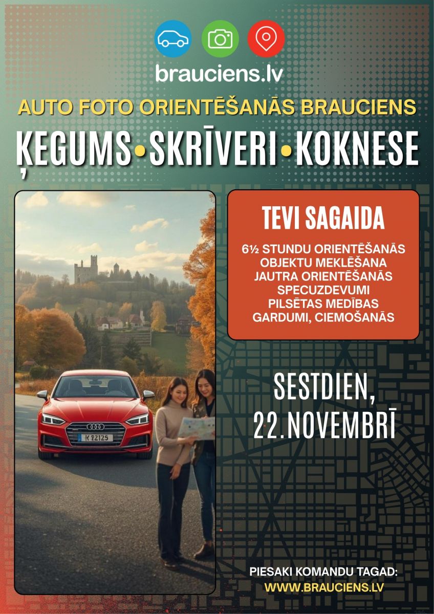 Autofotoorientēšanās brauciens "Ķegums-Skrīveri-Koknese" 22.novembrī