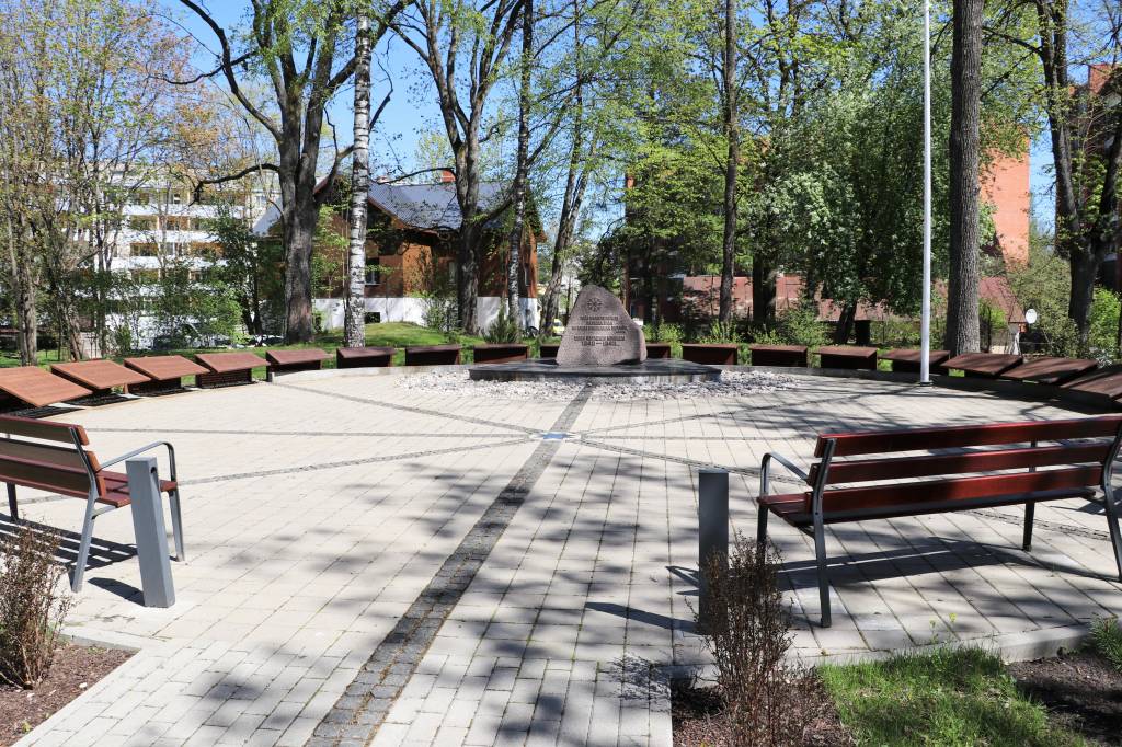 | Apraksts | Atklāts 1989. gadā. To veidojis akmeņkalis Jānis Lapsa. Akmenī iegravētā uzraksta idejas autors – Herberts Valters. Bruģētā laukuma centrs akcentēts ar stariem, kas, krustojoties centrā, veido ausekļa simbolu. Līdz akmenim ved divi celiņi. Tie simbolizē cilvēku dažādos likteņus, viens taisns, īss, ar šķēršļiem (kāpnes), otrs - līkumains, bet ērts. |